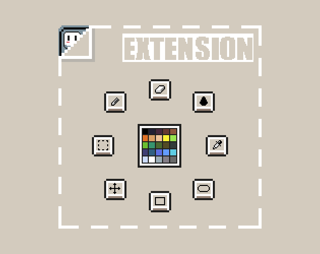 🎨 Quick access to tools: Pencil, Eraser, Paint Bucket, Eyedropper, Rectangle, Ellipse, Rectangular Marquee, Move